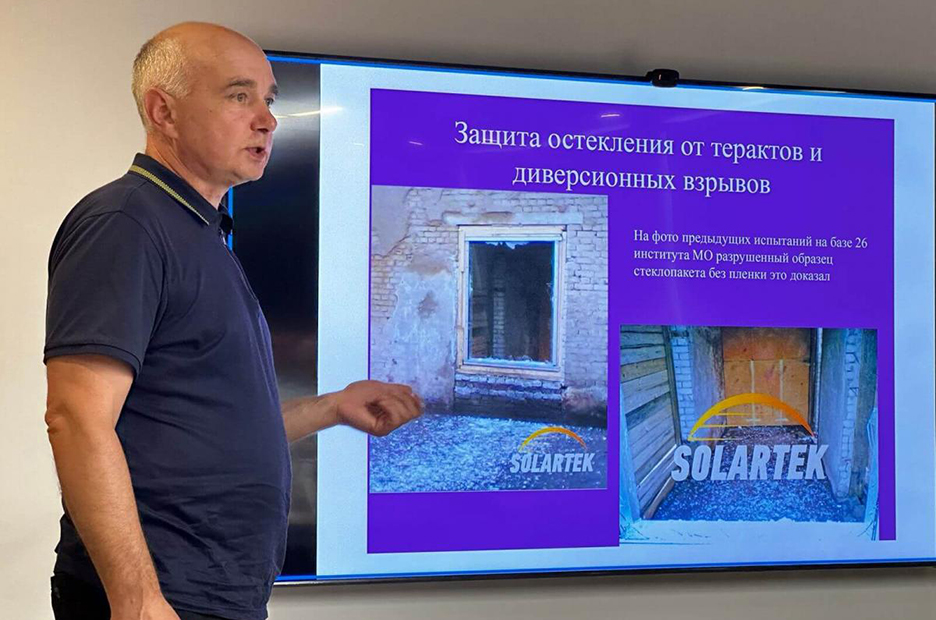 Юрий Викторович осветил проблему безопасности стекла при воздействии воздушной ударной волны, подчеркнув его высокую опасность для находящихся рядом людей. Он представил технологии, способные решить данную проблему.