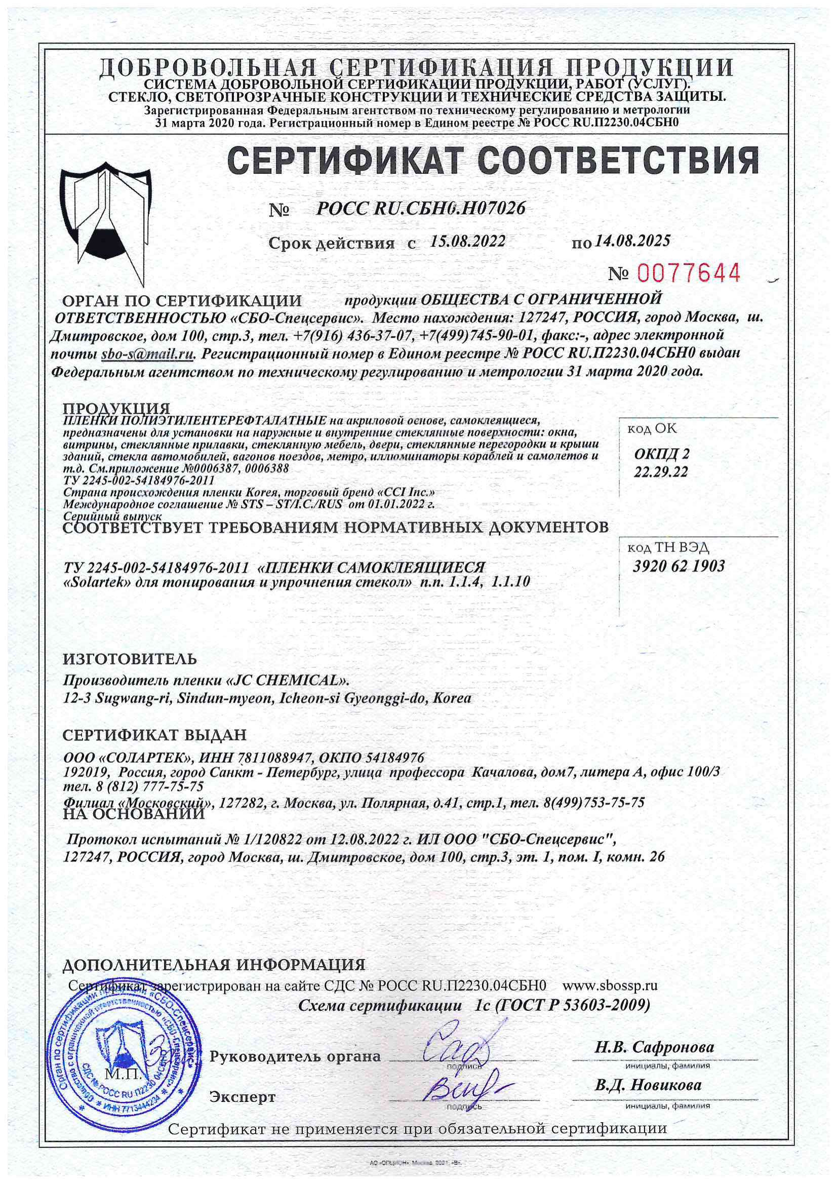 Работаем с сертифицированными материалами, соответствующими российским и международным стандартам. Все пленки, которые мы используем для тонировки автомобилей, защиты и декора окон, имеют необходимые сертификаты соответствия и качества.