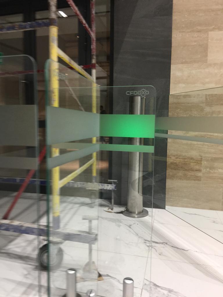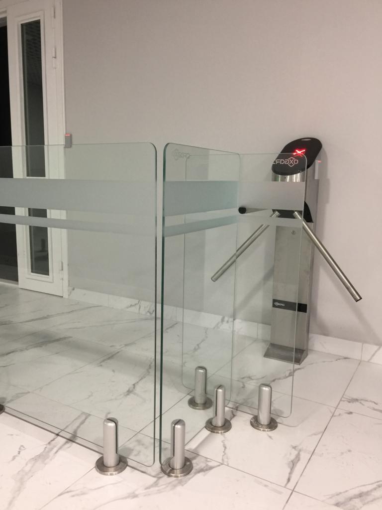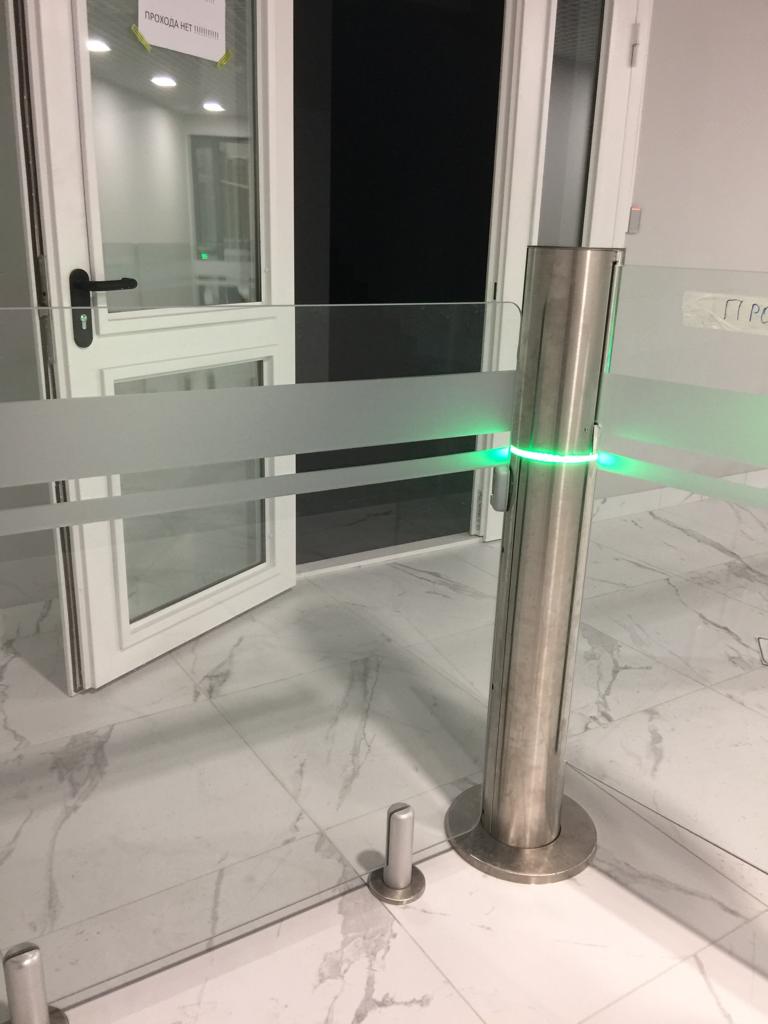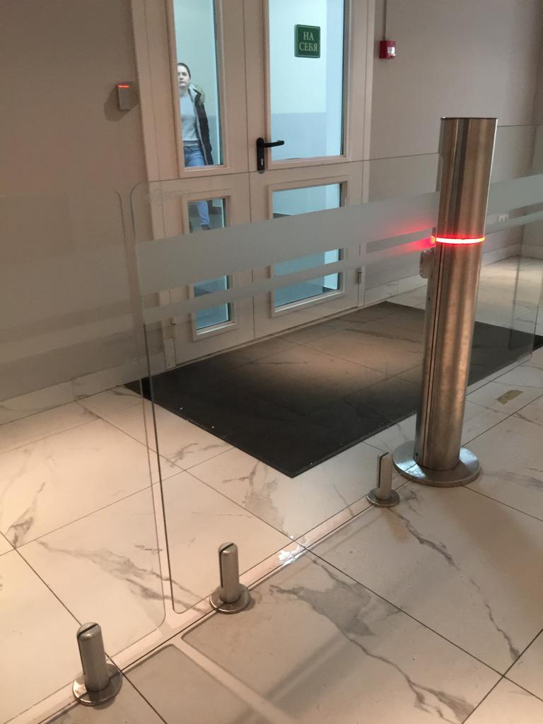 Установка полос из АД 220 на турникеты при входе.