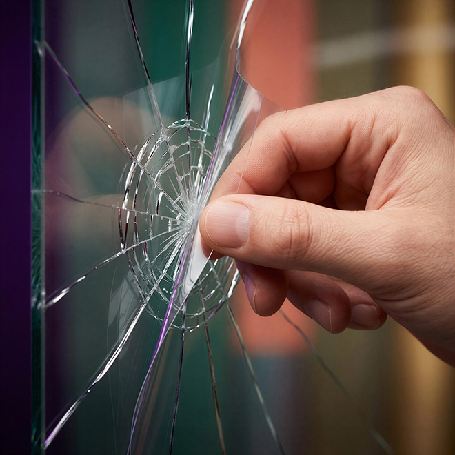 При этом защитная плёнка существенно повышает уровень безопасности обычного стекла: она увеличивает время и усилия, необходимые для его разрушения, удерживает осколки при повреждении и снижает риск травм. За счёт этого плёнка эффективно работает как экономически оправданная мера защиты в большинстве коммерческих, общественных и частных объектов.
