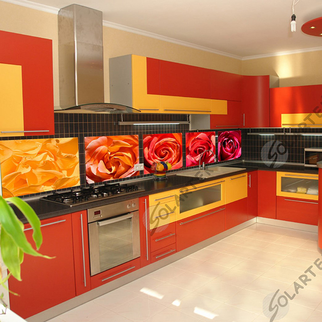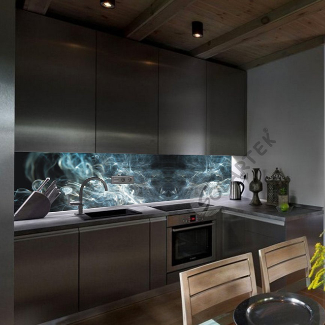 Печать наносится на обратную сторону стекла, поэтому полностью изолирована от внешних воздействий. Влага, жир, пар и бытовая химия не контактируют с изображением и не влияют на его внешний вид.