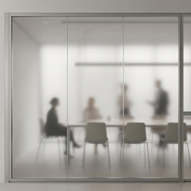 Позволяет закрыть обзор в переговорных, кабинетах, медицинских и жилых помещениях без физических преград.