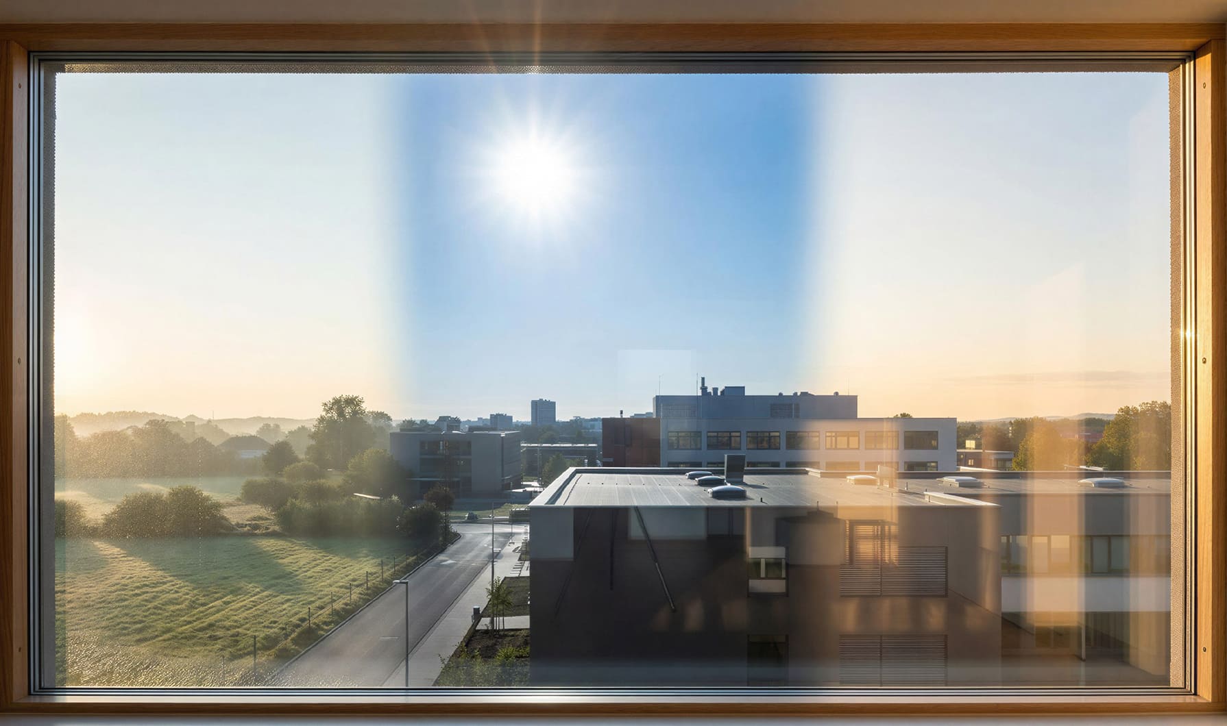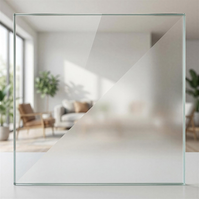 Контуры предметов и людей скрываются, экраны, документы и рабочие зоны перестают быть видимыми для посторонних. При этом свет продолжает равномерно проходить через стекло, сохраняя комфорт внутри помещения.