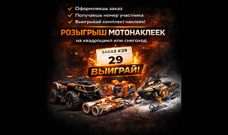 Приз — стильный комплект мотонаклеек. Подходит для квадроциклов и снегоходов. Яркий дизайн, прочные материалы, защита и стиль.